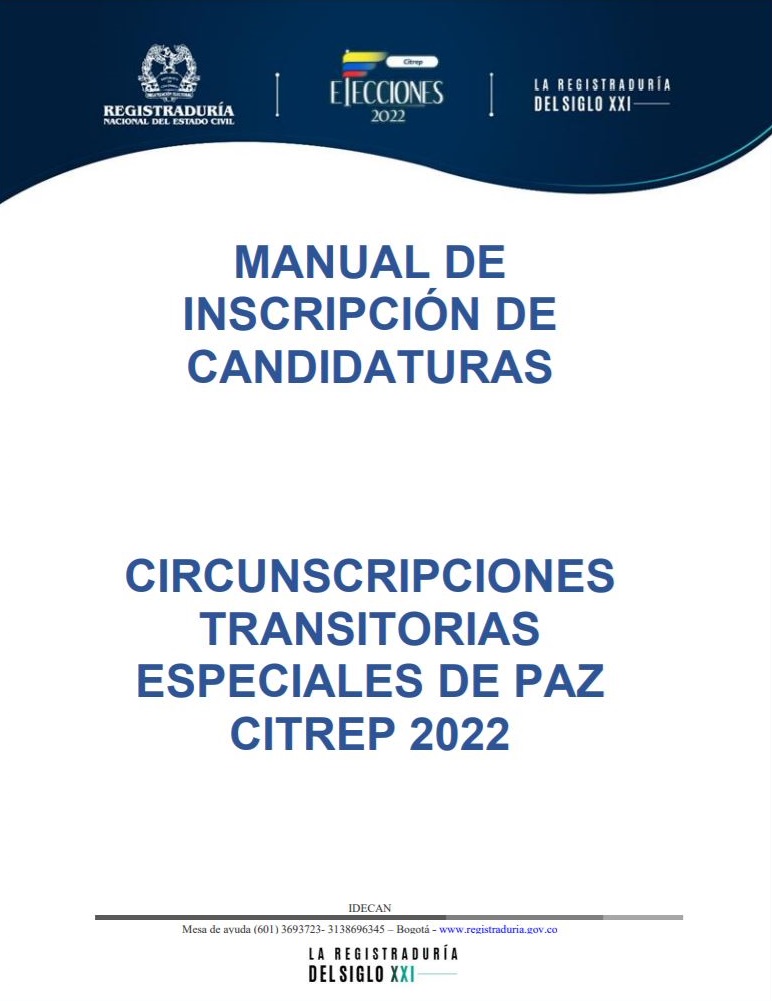 Manual de inscripción de candidatos para las elecciones de las Circunscripciones Transitorias Especiales De Paz – CITREP 2022.