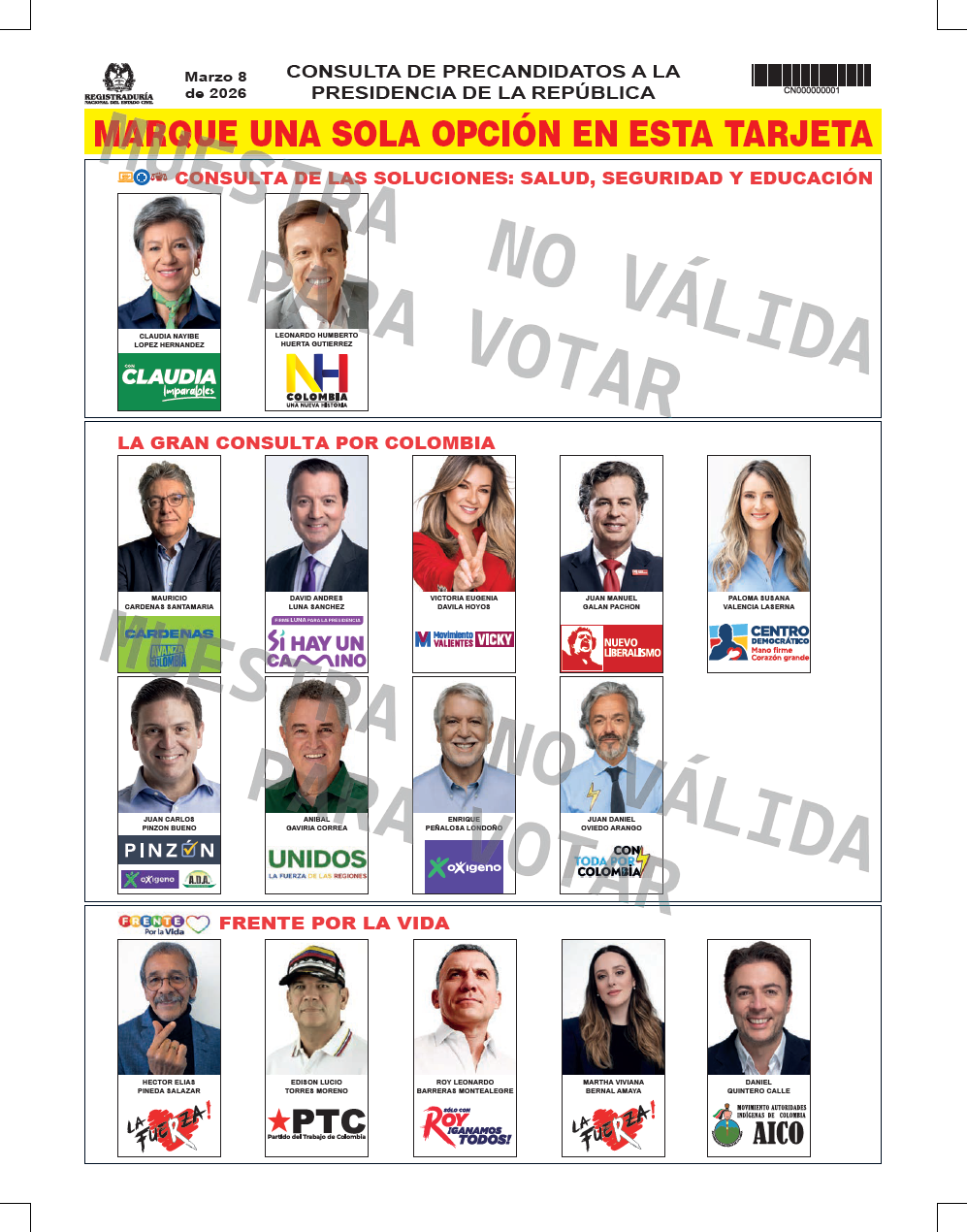 Conoce la tarjeta electoral para la consulta del próximo 8 de marzo de 2026.
