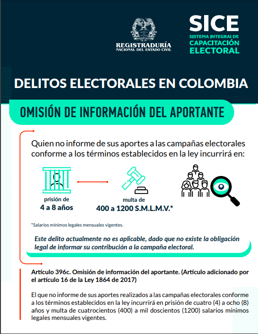 Quien no informe de sus aportes a las campañas electorales conforme a los términos establecidos en la ley incurrirá en: