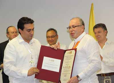 Previo a la intervención de los ponentes, el registrador Nacional, Carlos Ariel Sánchez, recibió la condecoración orden “Mérito a la Democracia”, en el grado de gran comendador, reconocimiento otorgado por la Comisión Segunda Constitucional del Senado de la República.