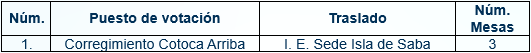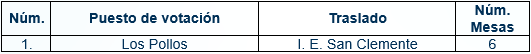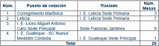 A continuación, se detallan los puestos de votación que se trasladarán, así como el número de mesas de cada uno: