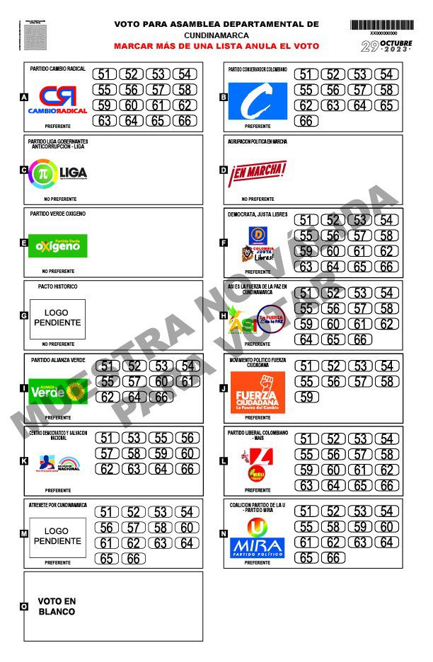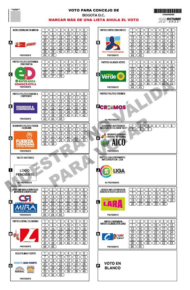 A continuación, conozca la posición de los logos de las agrupaciones políticas en las tarjetas electorales de Alcaldía y Concejo de Bogotá, y Gobernación y Asamblea de Cundinamarca para las elecciones territoriales 2023: